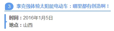 2016年1月5日,李克强总理在太原清控创新基地体验乘坐园区企业自主研发的太阳能电动车。得知研发者是山西本地人,其开发的太阳能技术转化率大大高于同类标准,总理转身对随行的山西省负责人说,哪里都有创造啊!你们要精心打造新引擎,培育经济新动能,拓展发展新天地。