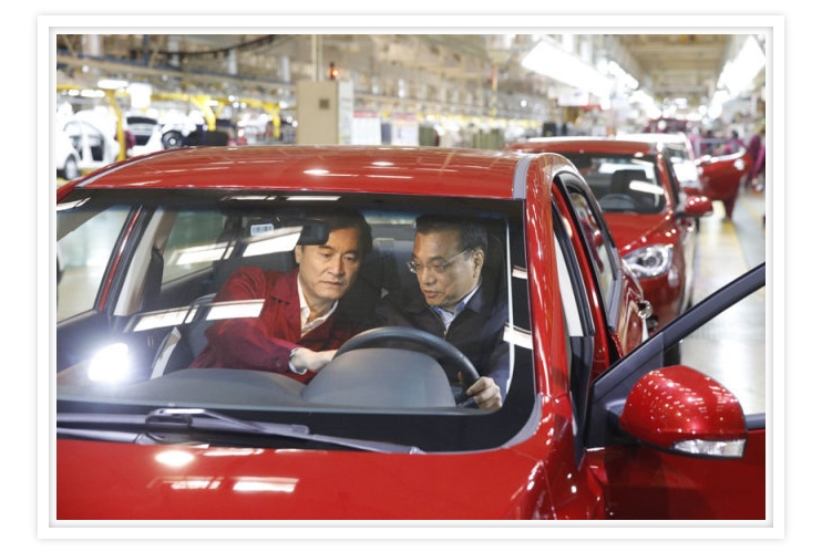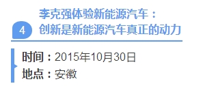 2015年10月30日上午,李克强总理到安徽江淮集团控股有限公司考察新能源汽车研发生产情况。他坐进一辆新能源汽车,还到车头、车尾详细询问汽车各个零部件情况。他说,绿色发展需要绿色产品,创新是新能源汽车真正的动力,要瞄准产业发展前沿,推动开放合作,努力攻克新能源汽车的核心关键技术,打造中国品牌。