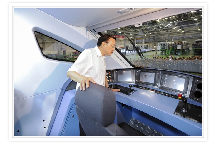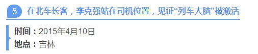 2015年4月10日,李克强总理考察北车长客时,站在司机位置上,见证了我国自主研发的“列车大脑”被激活。在一辆出口巴西的地铁车头内,李克强通过网络控制系统实时了解模拟列车运行状态。总理嘱咐,我为中国装备“站台”,希望你们给国家“撑台”,打造永不褪色的金名片!