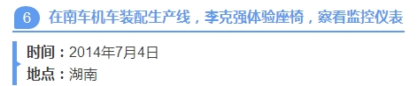 2014年7月4日,李克强总理在南车集团考察时,登上机车装配生产线,察看监控仪表,并体验座椅。李克强说,中国装备走出去,你们的机车车辆是代表作,我每次出访都要推销你们的产品,你们要备加爱惜自己的声誉,中国装备的生命在于质量,这是我们获得全球认可的根本保证。