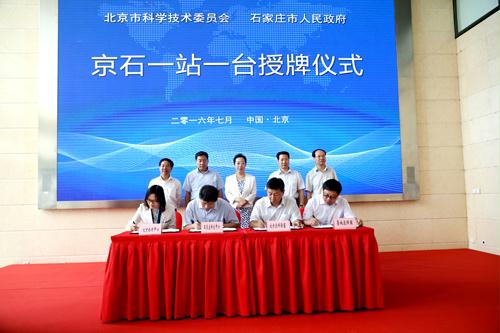 为全面贯彻落实京津冀协同发展战略,加快首都科技成果向以石家庄为代表的河北省转移转化。7月22日,北京市科委与石家庄市政府共同举办“首都科技条件平台石家庄合作站”、“北京技术市场石家庄服务平台”授牌活动。北京市科委主任闫傲霜、党组书记呼文亮,北京市推进京津冀协同发展领导小组办公室常务副主任王海臣,河北省科技厅副巡视员张涛,石家庄市副市长郝竹山等参加活动。活动由北京市科委委员王建新主持。