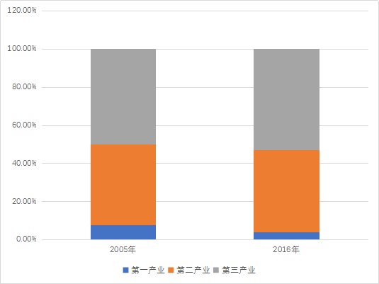2016年,杭州实现全市GDP11050.49亿元,其中三产业增加值为6768.26亿元,增长13%。三次产业结构由2015年的2.9:38.9:58.2调整为2.8:36:61.2。全市信息经济实现增长2688亿元,增长22.8%,站GDP24.3%,同比提高了1.3个百分点。其中电子商务产业、移动互联网产业、数字内容产业分别增长45.2%、45.1%和35%。