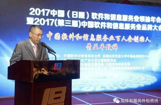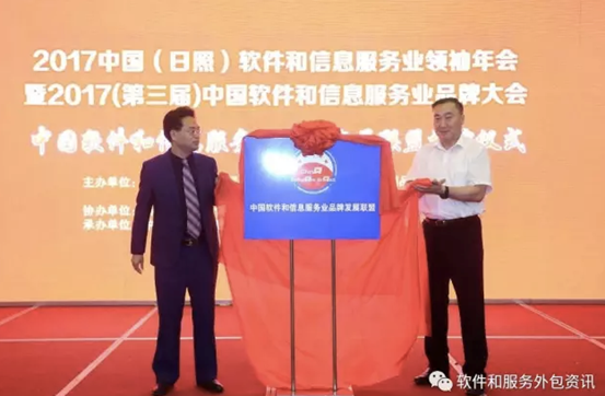 在本次大会上还举行了三项重要活动。日照市人民政府副市长徐淑利和首都经济贸易大学中国品牌研究中心主任祝合良教授共同为中国软件和信息服务业品牌发展联盟揭牌!本次会议也是中国软件和信息服务业百人会的首次理事单位成员大会,大会上中国软件和信息服务业百人会副会长钟明博宣读了产业倡议书!首都经济贸易大学中国品牌研究中心主任祝合良发布了“2017(第三届)中国软件和信息服务业品牌榜”。