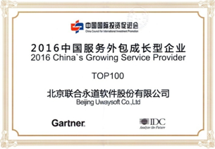 联合永道喜获2016中国服务外包成长型企业TOP100