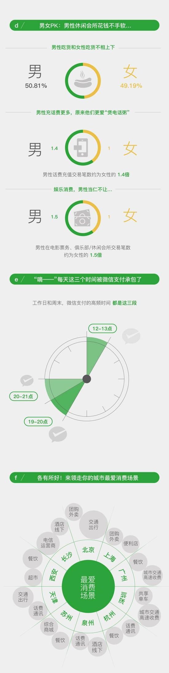 移动支付已融入吃喝玩乐、旅游出行、缴费就医、政务办事等日常生活的方方面面。微信支付作为移动支付代表,其大数据成为报告的主要样本。