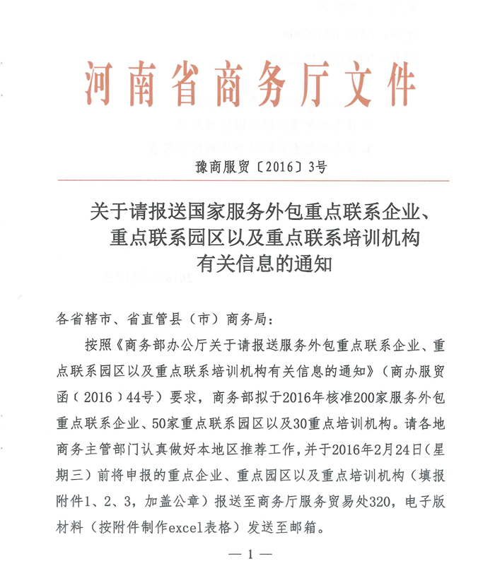 关于请报送国家服务外包重点联系企业、重点联系园区以及重点联系培训机构有关信息的通知