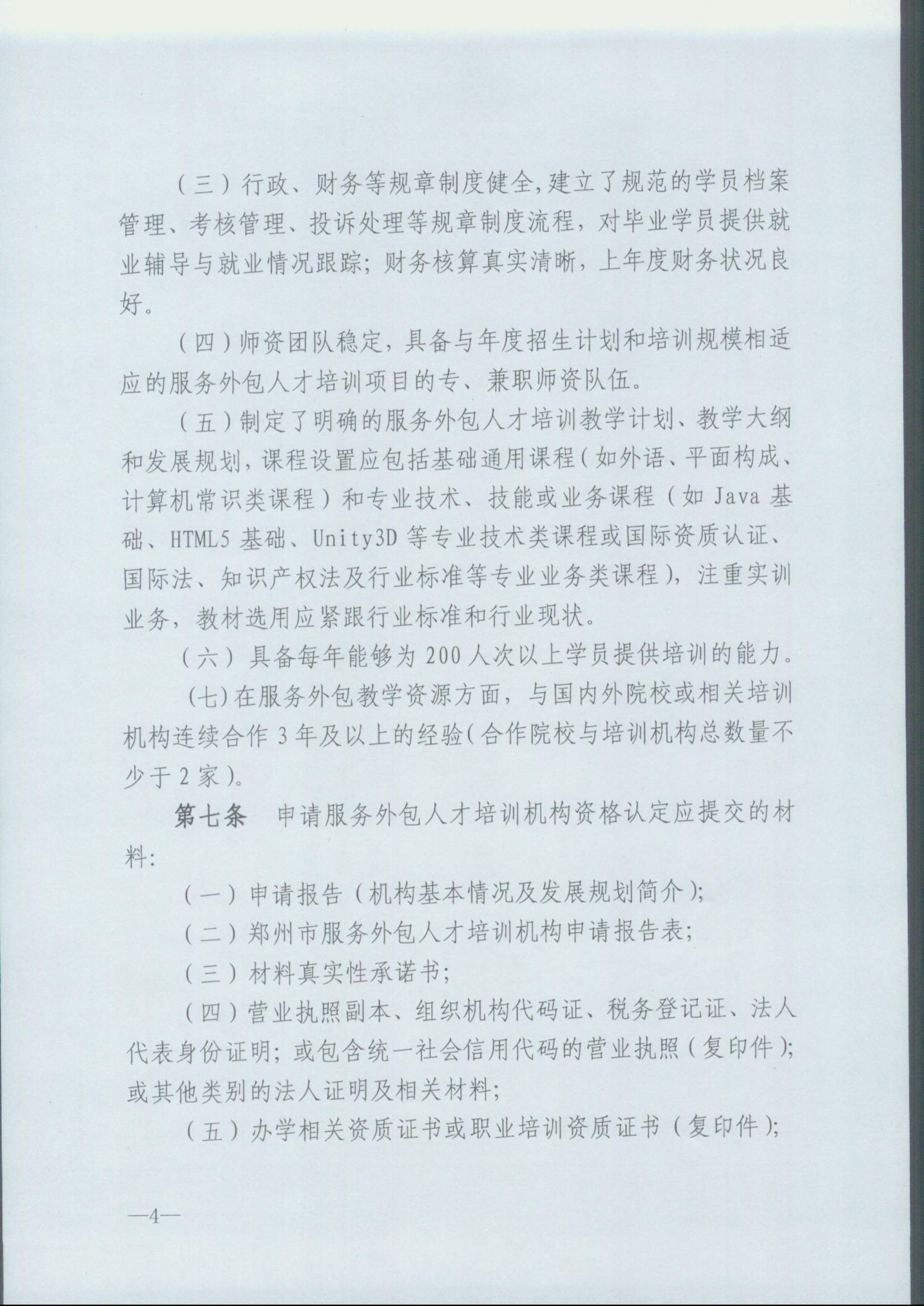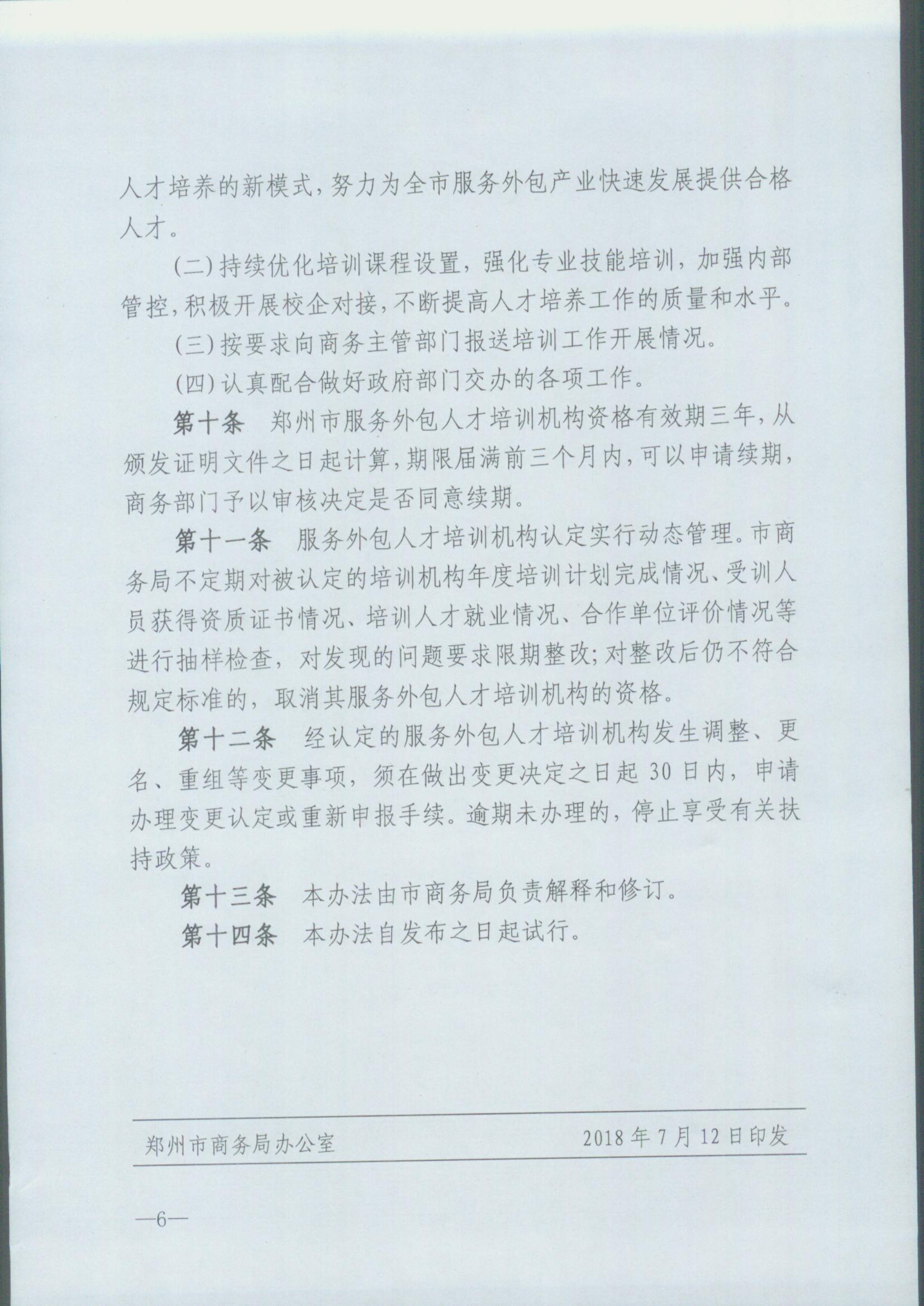 关于印发郑州市服务外包人才培训机构认定管理办法(试行)的通知