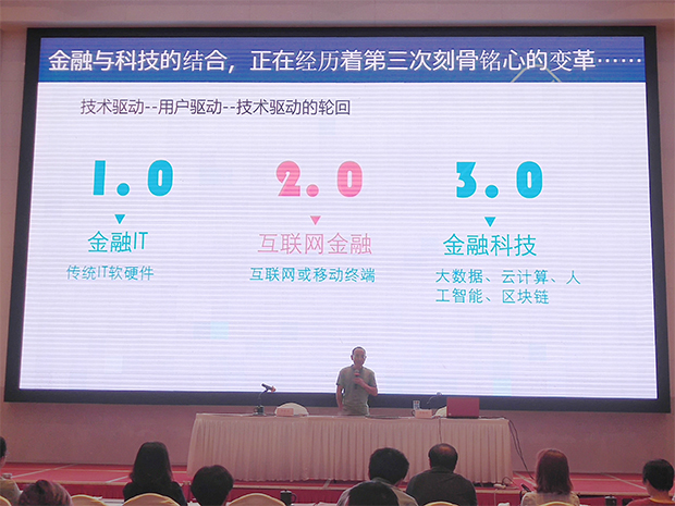 在演讲中,齐海涛先生表示,随着金融与科技更加深入地结合,我们也正在经历着第三次深刻的技术变革,3.0时代下的技术驱动则需要由大数据、云计算、人工智能和区块链这四大基础工具来实现。金融科技发端于金融IT系统,而未来随着其他技术手段的丰富,科技之间的相互吸引力将使得金融与实际生活结合得更加紧密,最终实现无金融社会。