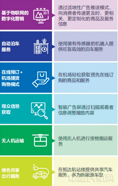“泊车应用”主要基于物联网感应器和监控系统等技术,为旅客解决机场泊车和付款等问题。一般可以用一款简明易用的应用程序提供全套的找车位、取车、代泊车和预约停车服务。
