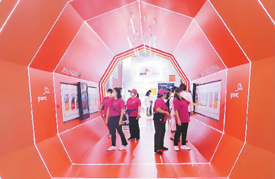9月7日,服贸会上众多新技术新成果亮相。图为观众在服贸会展区参观。 陈晓根摄(人民视觉) 9/>