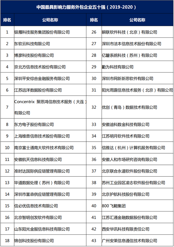 变革与增长——中国最具影响力服务外包企业五十强(2019-2020)榜单正式发布