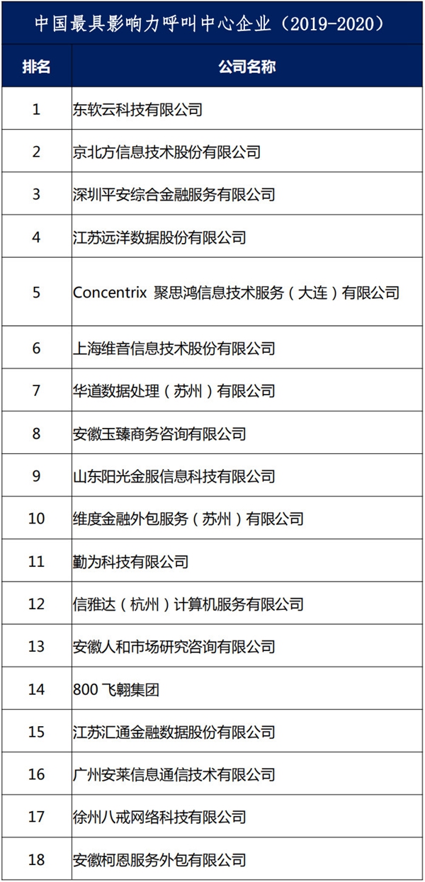 中国最具影响力呼叫中心企业(2019-2020)榜单正式发布