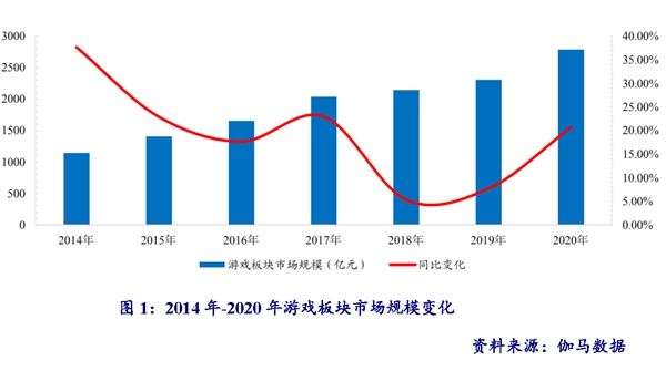 一、中国游戏行业2020年同比增长超过20%,达到2787亿元