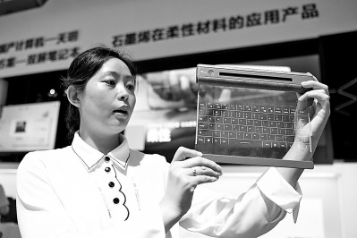 “更值得一提的是,石墨烯可以用来做柔性触摸屏、触控屏。目前,市场上一般是用ITO(氧化铟锡)玻璃做触摸屏,ITO玻璃比较脆,不能来回弯折。而石墨烯的柔性特质则决定其可以来回掰。”彭海琳说。