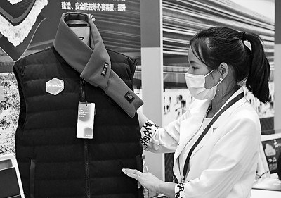 石墨烯发热羽绒马甲和石墨烯发热围巾。新华社发
