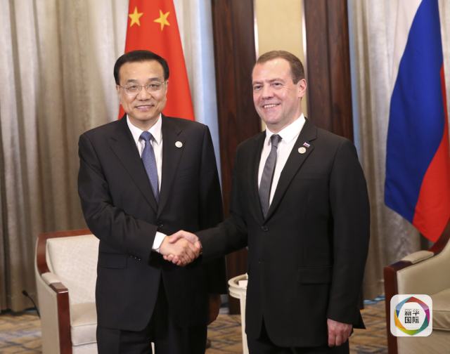 李克强总理会见俄罗斯总理梅德韦杰夫。(新华社记者 庞兴雷 摄)