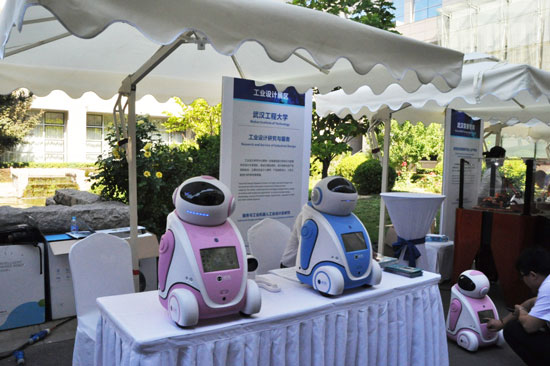 这是武汉工程大学设计的机器人——“能陪伴的家庭教师”,他不仅能担负起老师的职责,教授孩子们知识和语言,还能成为他们贴心的伙伴,陪伴其成长。机器人还被设计了性别,蓝色的是“男士”,粉色的是“女士”。