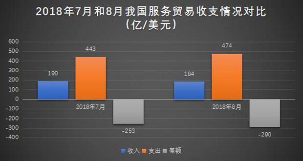 2018年8月我国服务贸易收支逆差290亿美元 比上月有所增加