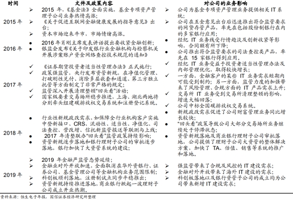 表1:近5年金融行业政策对恒生电子业务的影响