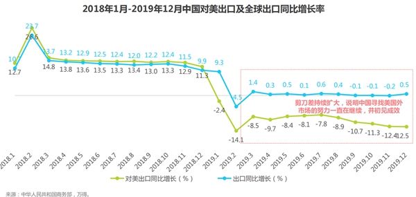 在两年间,中国对美贸易总额占比整体处于下降趋势,而对东盟贸易却呈现上升趋势。这一方面说明,基础工业制造向生产成本更低的国家转移,中国不知不觉间也成为了基础商品的需求方;另一方面也为中国维持固有庞大的国家轻重工业找到了新的平衡点。