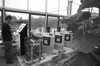 安徽省合肥市在推进乡村振兴过程中着力发展智慧农业。图为工作人员在合肥市肥西县花岗镇现代农业示范区一蔬菜种植基地操作智能水肥一体机。 新华社记者 刘军喜 摄