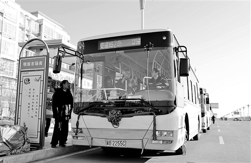 图为河北省唐山市汉沽管理区,投入运营的新能源纯电动公交车停靠车站载客。河北省唐山市汉沽管理区公交网络/>
