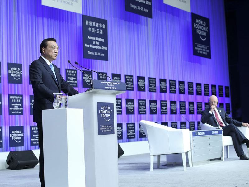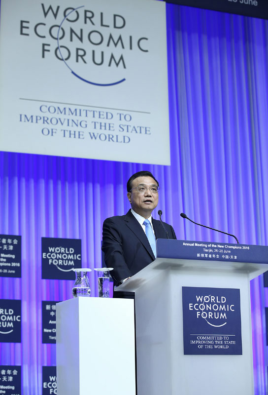 【李克强以“十年树木”开始第10届夏季达沃斯致辞】李克强总理27日在第10届夏季达沃斯开幕式致辞中说/>