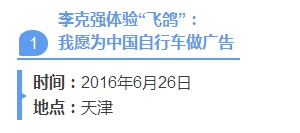 2016年6月26日,在飞鸽自行车天津胜利路体验店,李克强总理来到一辆碳纤维自行车前,掂了掂重量,又亲自体验了一下这辆超级智能自行车的性能。他说,我愿为中国自行车做广告,更愿为“中国制造”智能升级“站台”。