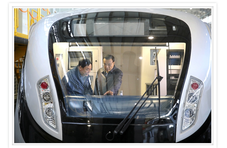 2015年4月10日,李克强总理考察北车长客时,站在司机位置上,见证了我国自主研发的“列车大脑”被激活。在一辆出口巴西的地铁车头内,李克强通过网络控制系统实时了解模拟列车运行状态。总理嘱咐,我为中国装备“站台”,希望你们给国家“撑台”,打造永不褪色的金名片!