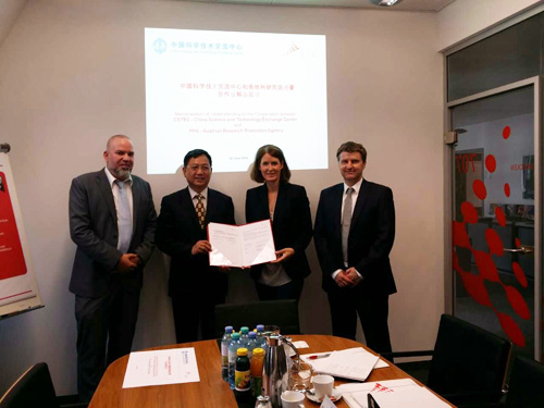 同期,中心应邀与奥地利联邦科学、研究和经济部,奥地利联邦交通、创新和技术部,奥地利研究和技术发展理事会,奥地利科学基金,奥地利教育和研究国际合作署等奥科技界的主要机构代表进行了广泛的交流。会后,奥地利联邦科学、研究和经济部,奥地利联邦交通、创新和技术部国际合作主要负责人参加了中心和奥地利研究促进署合作谅解备忘录的签订仪式,中国驻奥地利使馆科技处全程参与了中心在奥的活动。
