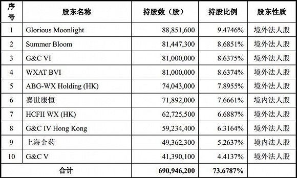 另外,药明康德豪华的股东阵容也是资本市场一大看点。根据招股书,药明康德目前拥有42个股东,其中有17名外资股东,前十名股东持股合计占到73.68%,本次发行后将降至66.31%。