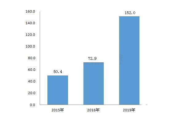 据上述报告数据,2016年,我国服务机器人市场规模为72.9亿元,同比增长44.6%。按此这个发展势头,预计到2019年,服务机器人市场规模将接近152亿元。