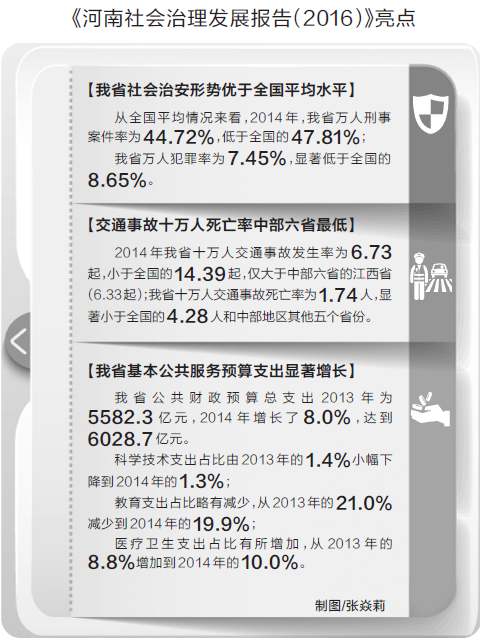 《河南社会治理发展报告(2016)》发布 社会治安形势优于全国平均水平