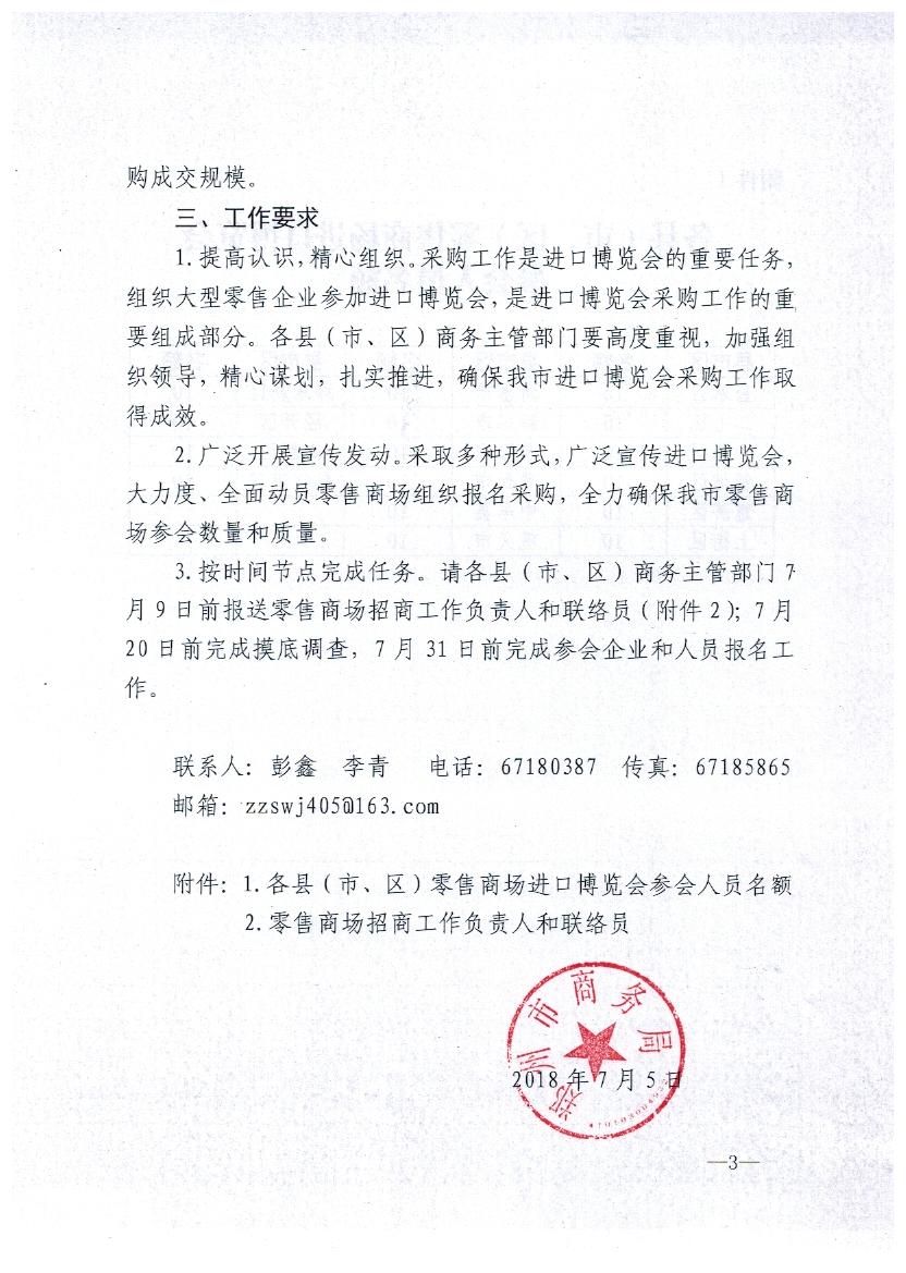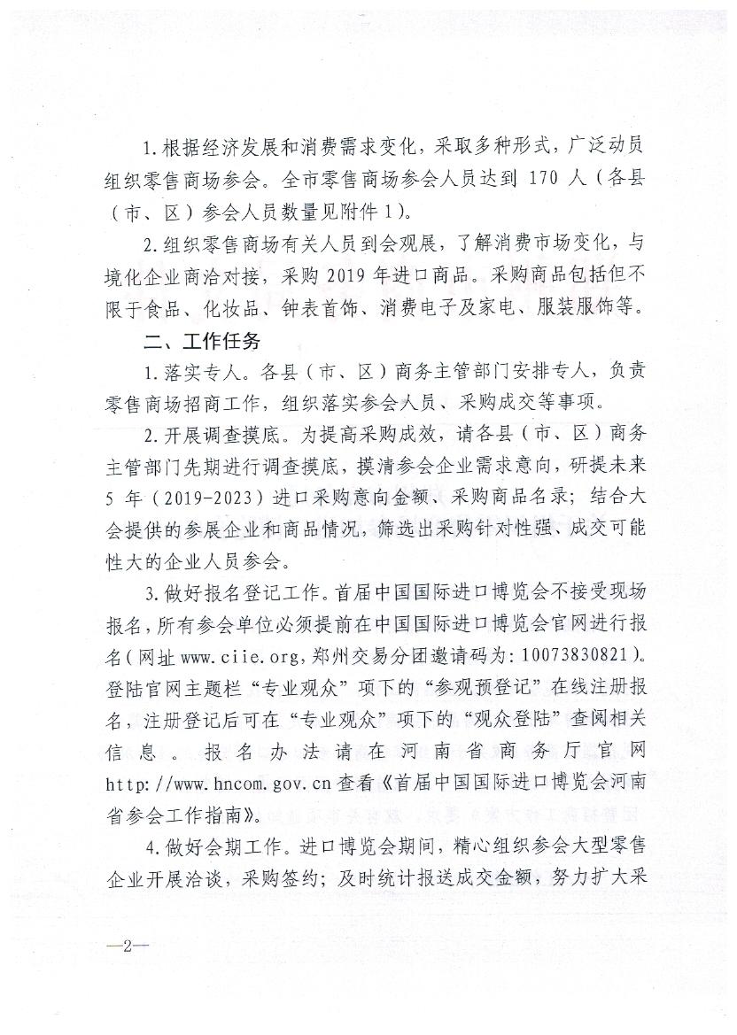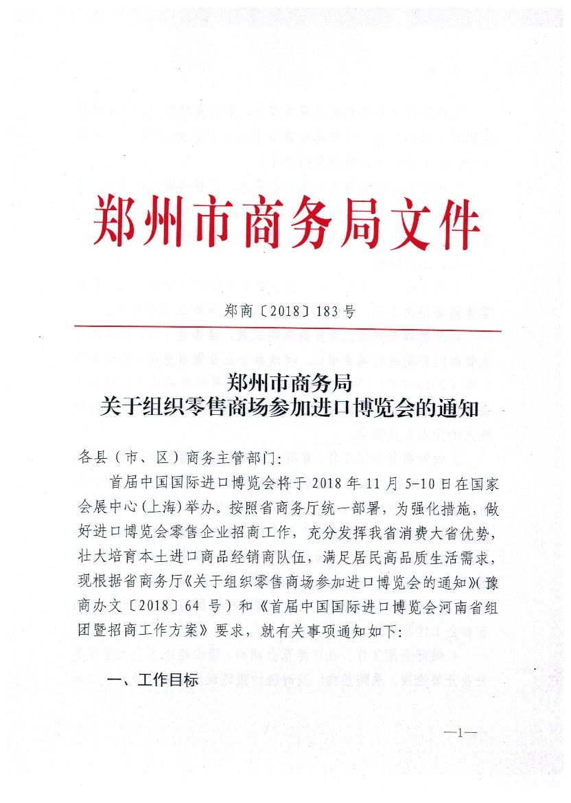 郑州市商务局关于组织零售商场参加进口博览会的通知