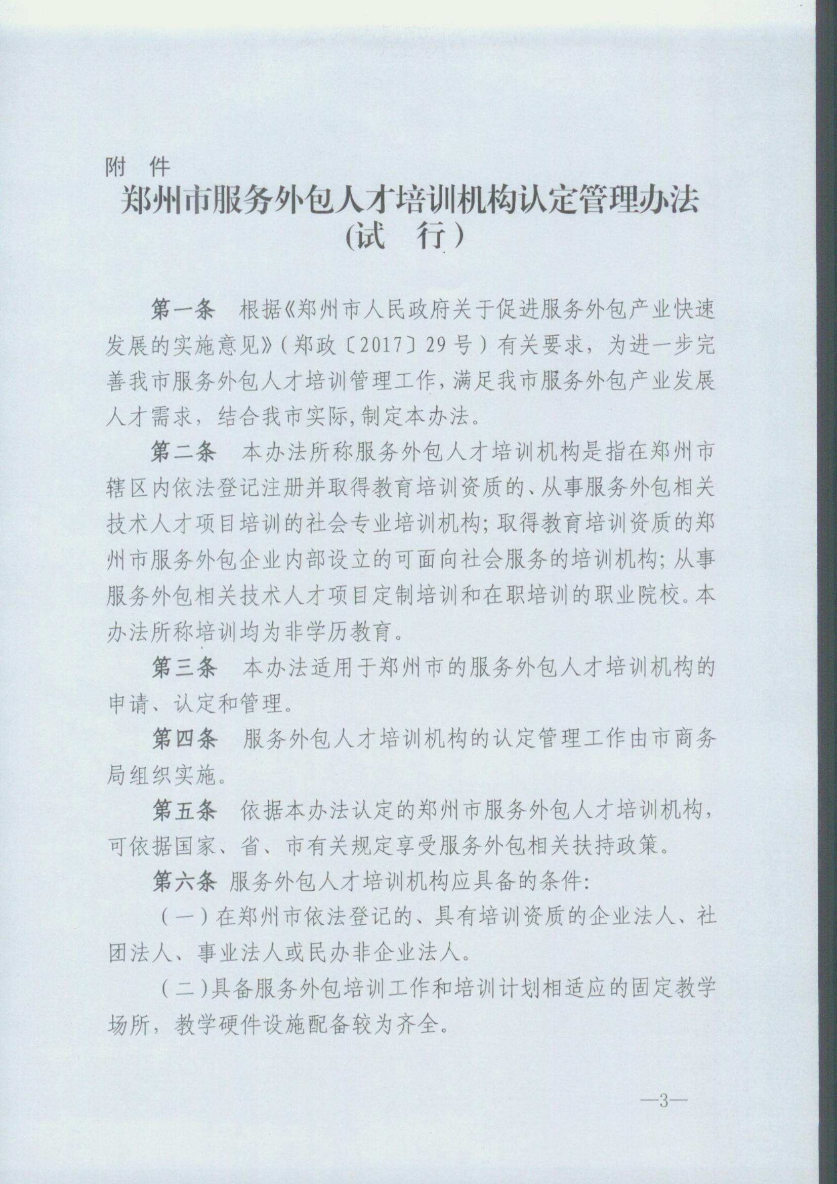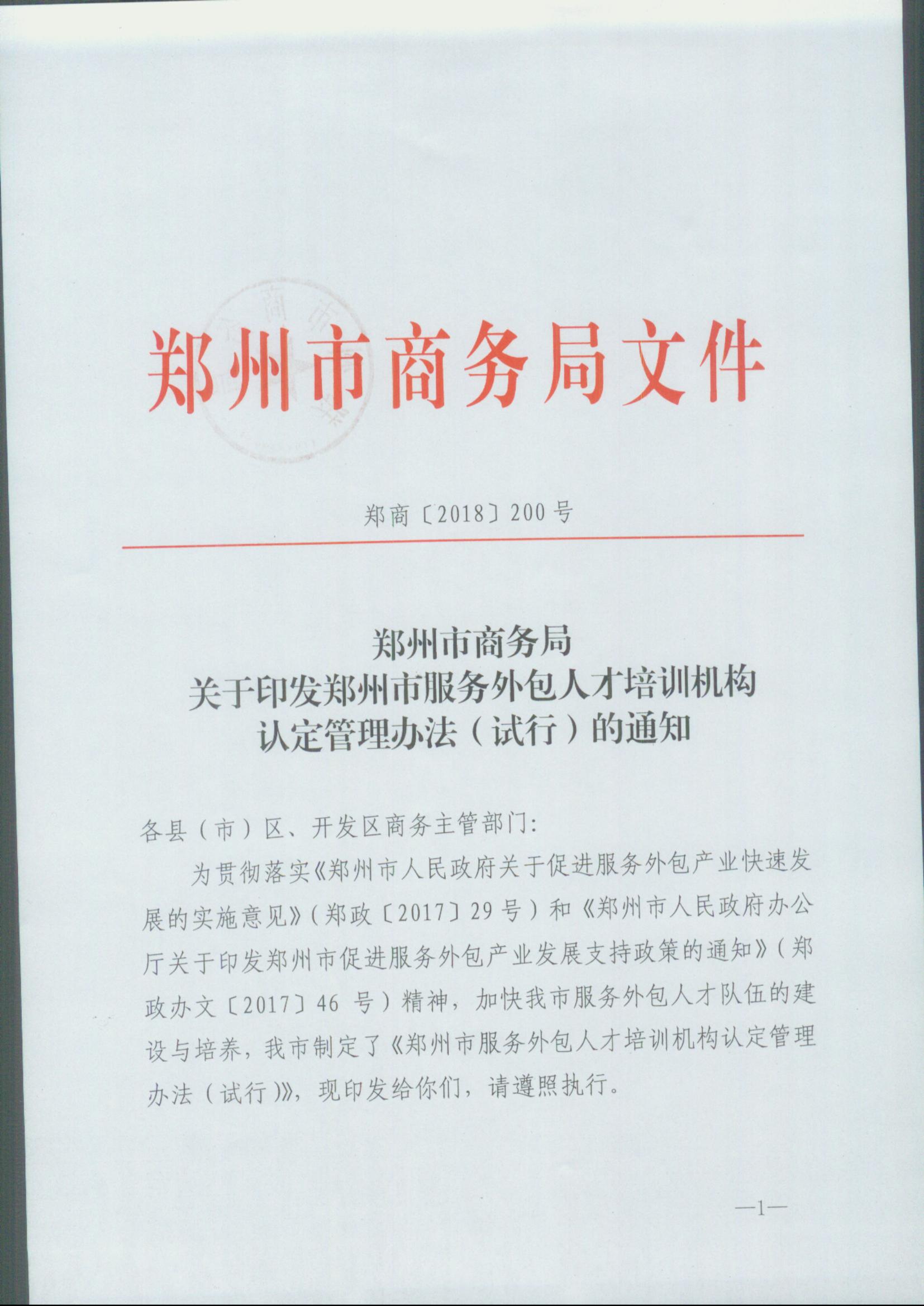 关于印发郑州市服务外包人才培训机构认定管理办法(试行)的通知