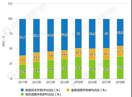 ▍信息技术外包(ITO)仍占据主导地位 知识流程外包(KPO)发展迅速