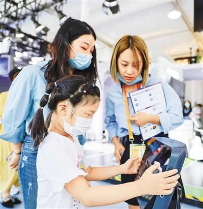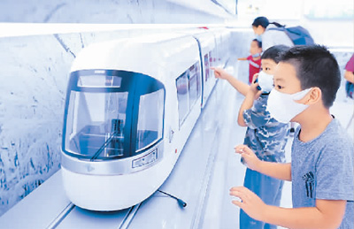 9月7日,孩子们在服贸会上被中车长春设计的地铁列车吸引。 |