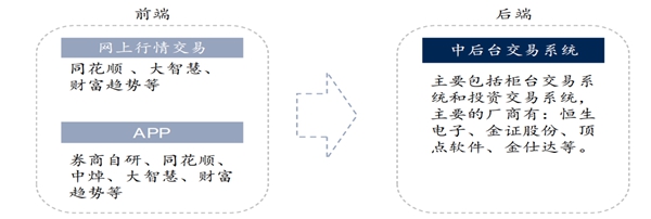 图2:证券公司的前端和后端业务系统及主要供应商