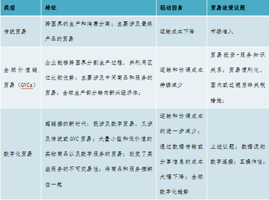 数字驱动的贸易:通过数据流实现的全球价值链、通过数字技术实现的智能制造等所有商业模式的可数字化操作的部分,以及所有行业中能利用数字技术去实现国际化的部分所形成的跨境贸易交付。