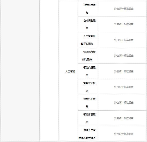 在服务外包统计分类中,大数据服务、云计算服务、人工智能服务、区块链技术服务等四个个领域已经有涉及,因此,需要定义的就是物联网细分领域。